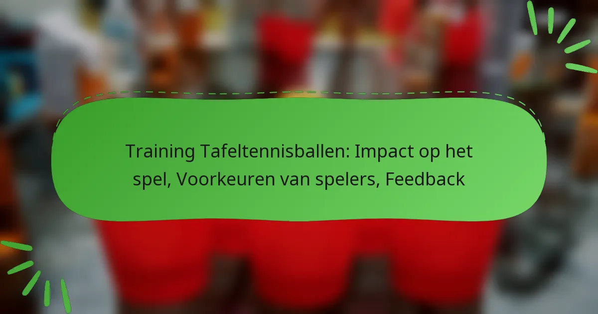 Trainings tafeltennisballen beïnvloeden het spel aanzienlijk door de prestaties van de speler, de controle en de algehele ervaring te beïnvloeden. De keuze van de bal kan veranderen hoe spelers met het spel omgaan, wat invloed heeft op hun vermogen om vaardigheden te ontwikkelen en strategieën effectief uit te voeren.